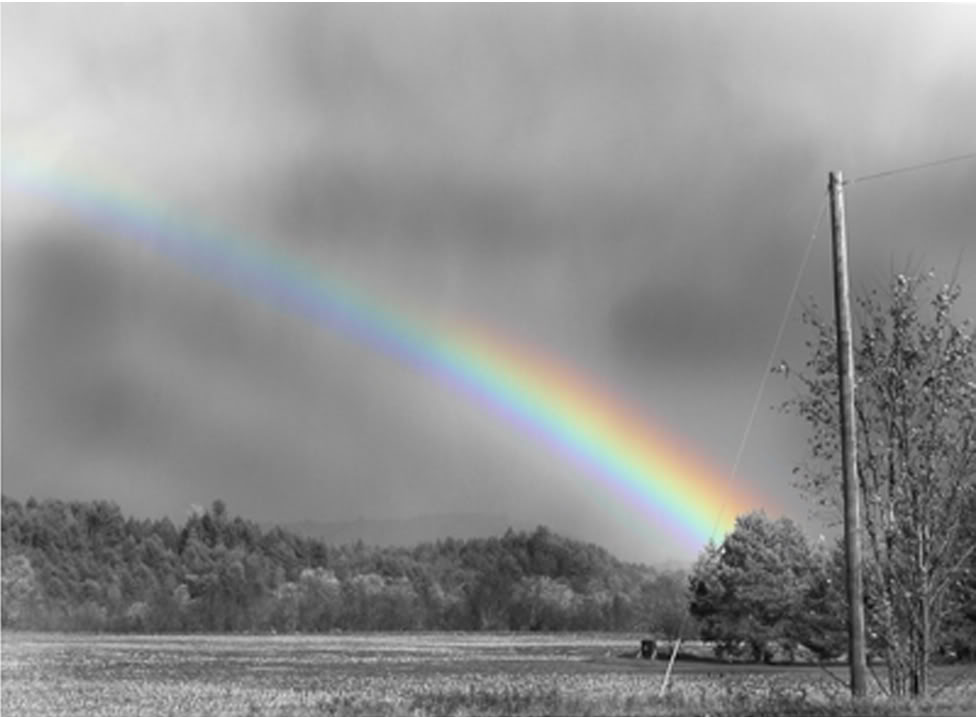 Maybe the place where black and white turn to gray is where the rain comes, bringing tears of grief and sorrow but only for a short while because the sun is always there in the sky and eventually the gray dissipates and then the rainbows shine brightly with every color of creation; where nothing is black and white but instead brightly colored and brilliant in the sunlight. Warmth and beauty that I can absorb with my thin skin and spread to others!